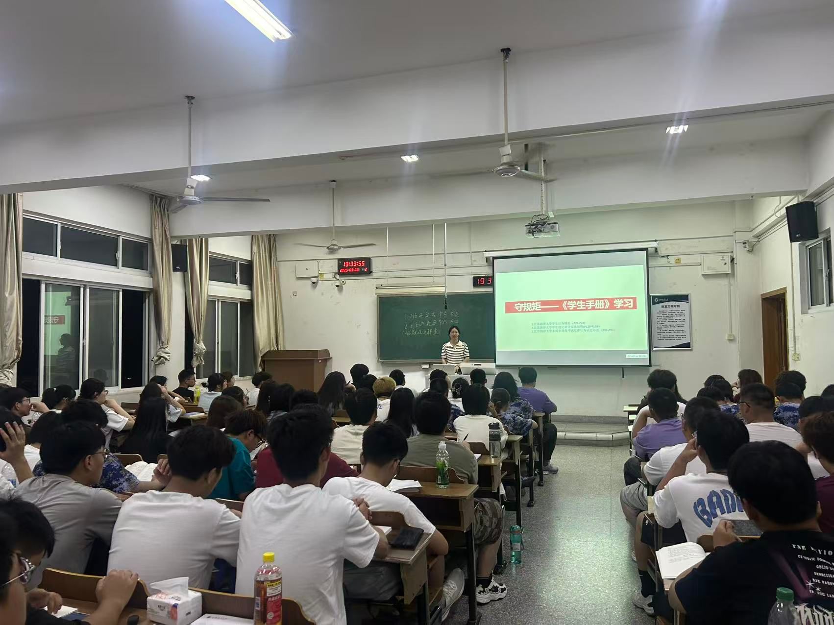 本次活动分专业进行,各位老师围绕学籍管理、学位授予、奖助学金评定、宿舍管理规定、违纪处分办法等重要内容,结合具体案例为同学们进行了细致讲解,并就学籍管理、请假流程、考试纪律等学生常见问题作了重点说明。希望新同学们要明晰规则,守规矩知敬畏;要明确方向,科学规划学业生涯,让大学四年过得既充实又精彩。