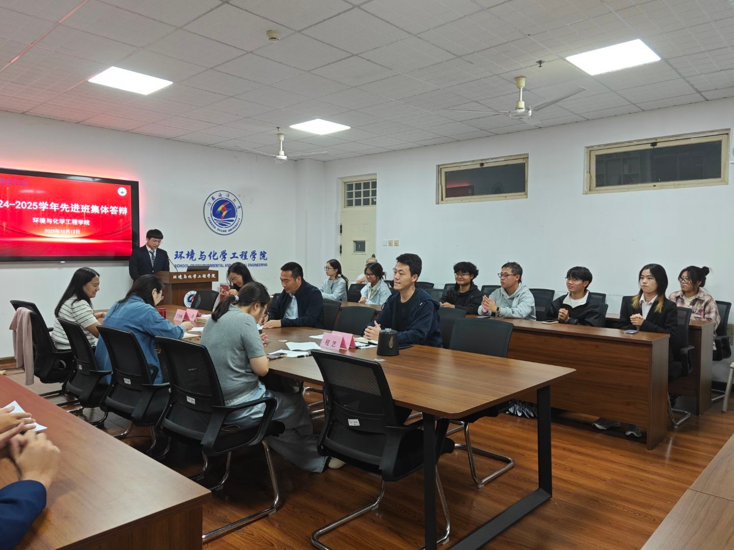 答辩会上,来自不同年级和专业的11个班级参与角逐,各班亮点纷呈:环工1231班激情洋溢地展现了班级凝聚力,温情阐述了一个被称为“家”的集体;安工1241班介绍了班级的管理特色,条理清晰地展示了班级在学风建设方面的探索和成效;化工1232班创新采用视频形式,生动展现了班级学生的日常点滴及荣誉成果……会上,各班级负责人围绕思想建设、班风学风、志愿服务、班级特色等方面内容进行展示,现场气氛热烈,展现了各班级的建设成效和学生的良好精神风貌。
